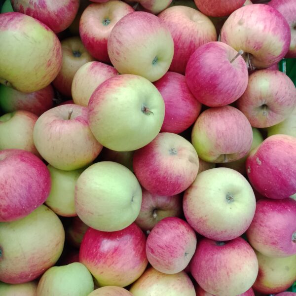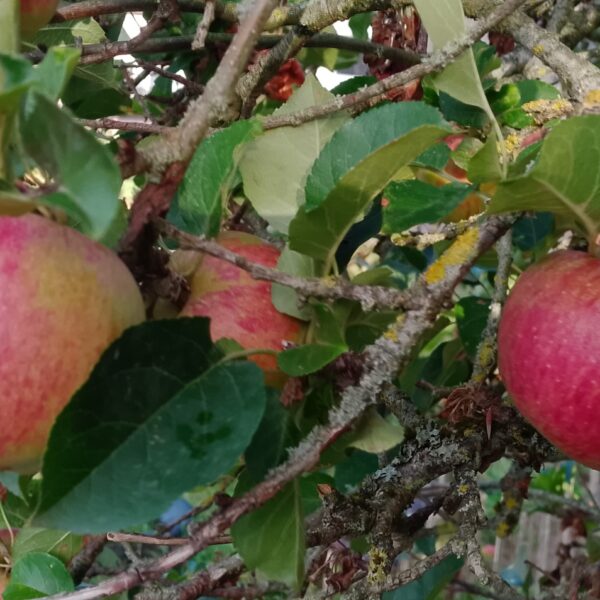 These apples are from an old apple tree of unknown historical origin, so the actual variety is a mystery. It has been suggested that it may be Worcester Pearmain, but this is unconfirmed.